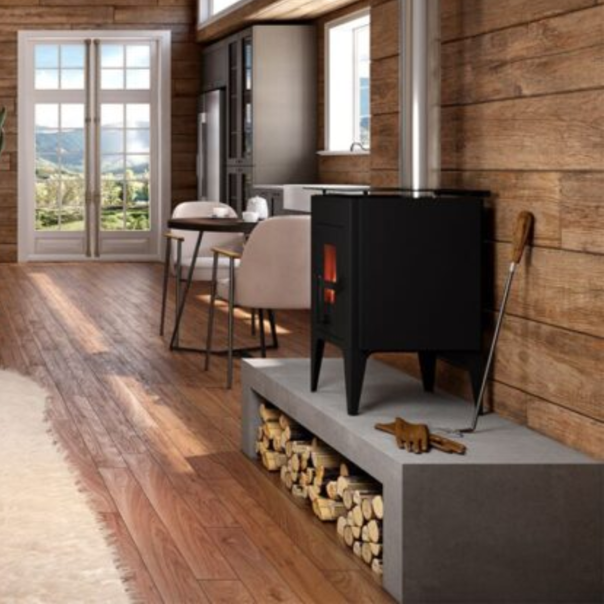 • Vidro cerâmico importado na porta capaz de transmitir todo o calor gerado internamente ao ambiente onde estiver instalado;