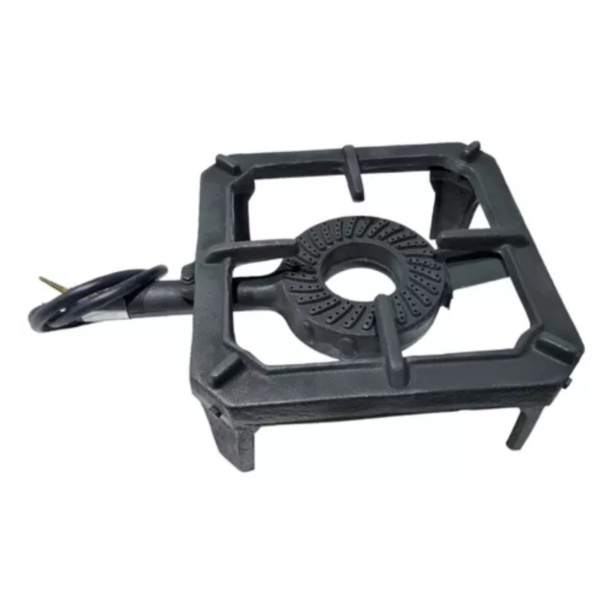 - Acompanha uma mangueira e um registro, ambos compatíveis com botijões residenciais.